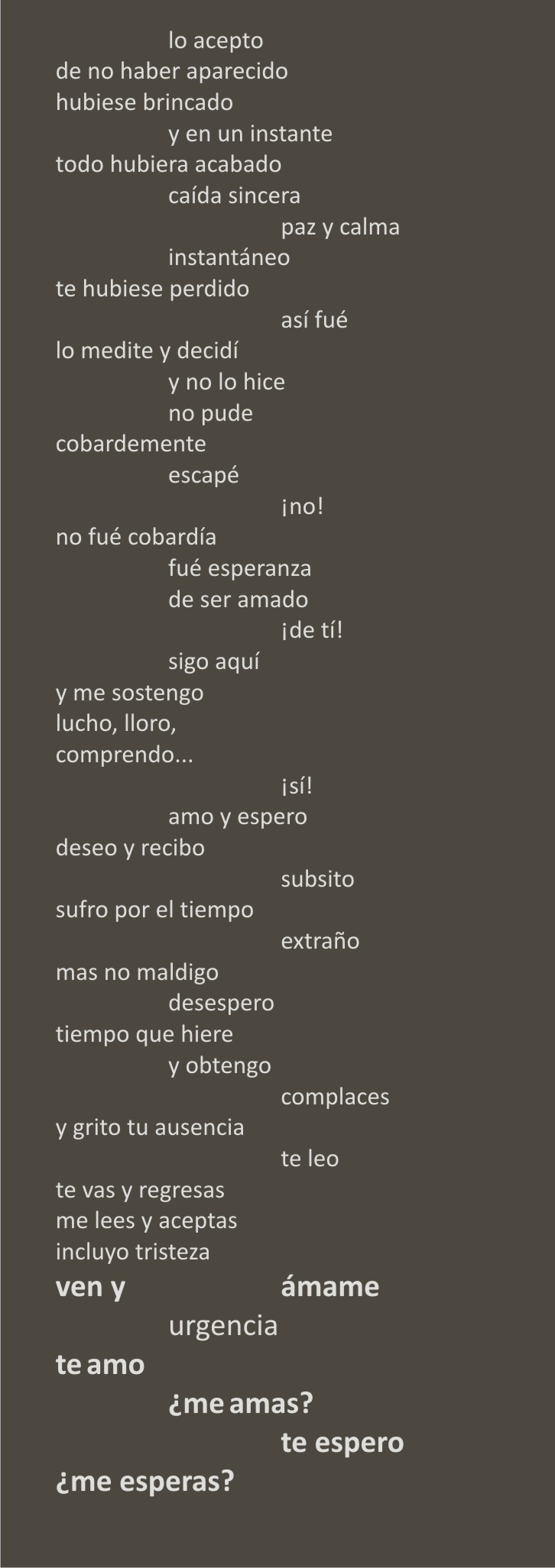 Esta entrada fue publicada en Automatísmos diarios, Quebrantahuesos y etiquetada amor, automatismo, desesperación, distancia, Solilóquios, temor. Guarda el enlace permanente.